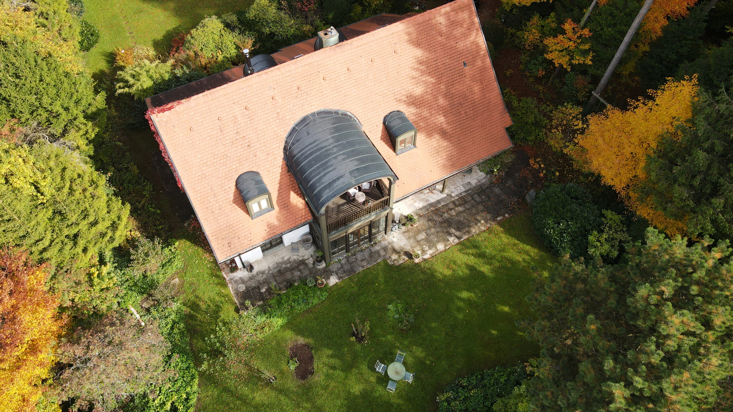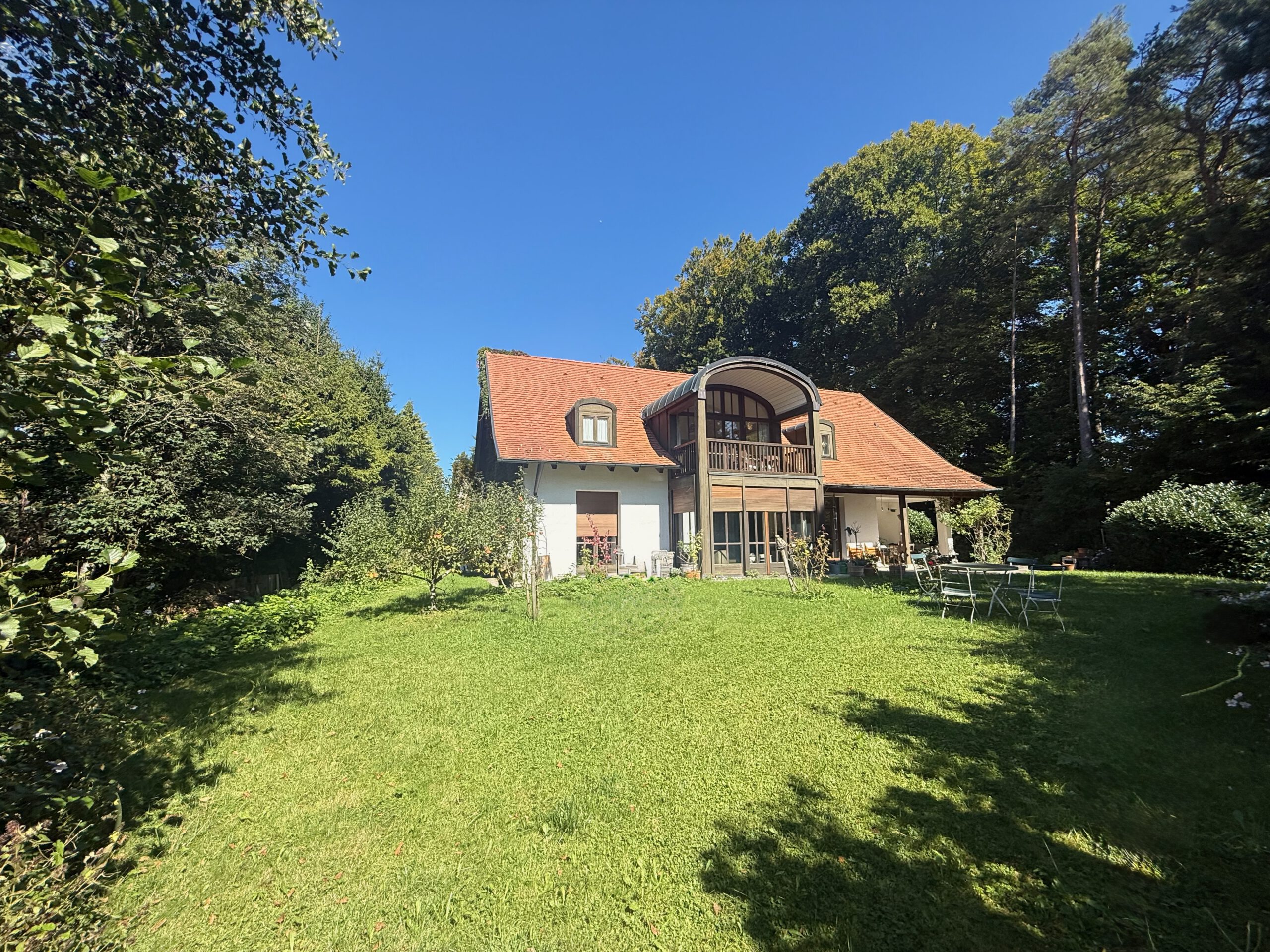 Die Zufahrt zum Grundstück erfolgt über einen Privatweg mit Seeblick. Diese Lage und der alte Baumbestand garantieren eine vollkommen ruhige und private Wohnatmosphäre. Der liebevoll gestaltete Garten mit großzügiger Terrasse lädt zum Entspannen ein und erweitert