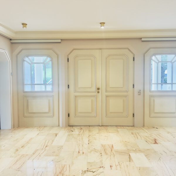 Zur Immobilie gehören sowohl eine Doppel- als auch eine Einzelgarage, die ausreichend Platz für Fahrzeuge bieten. Ein luxuriöses Wohnbad sowie zwei Schlafzimmer und ein Ankleidezimmer bieten Komfort und Raum für Entspannung. Zusätzlich verfügt die Villa über zwei Einliegerwohnungen, die vielfältige Nutzungsmöglichkeiten bieten und Platz für Gäste oder zusätzlichen Wohnraum bieten.