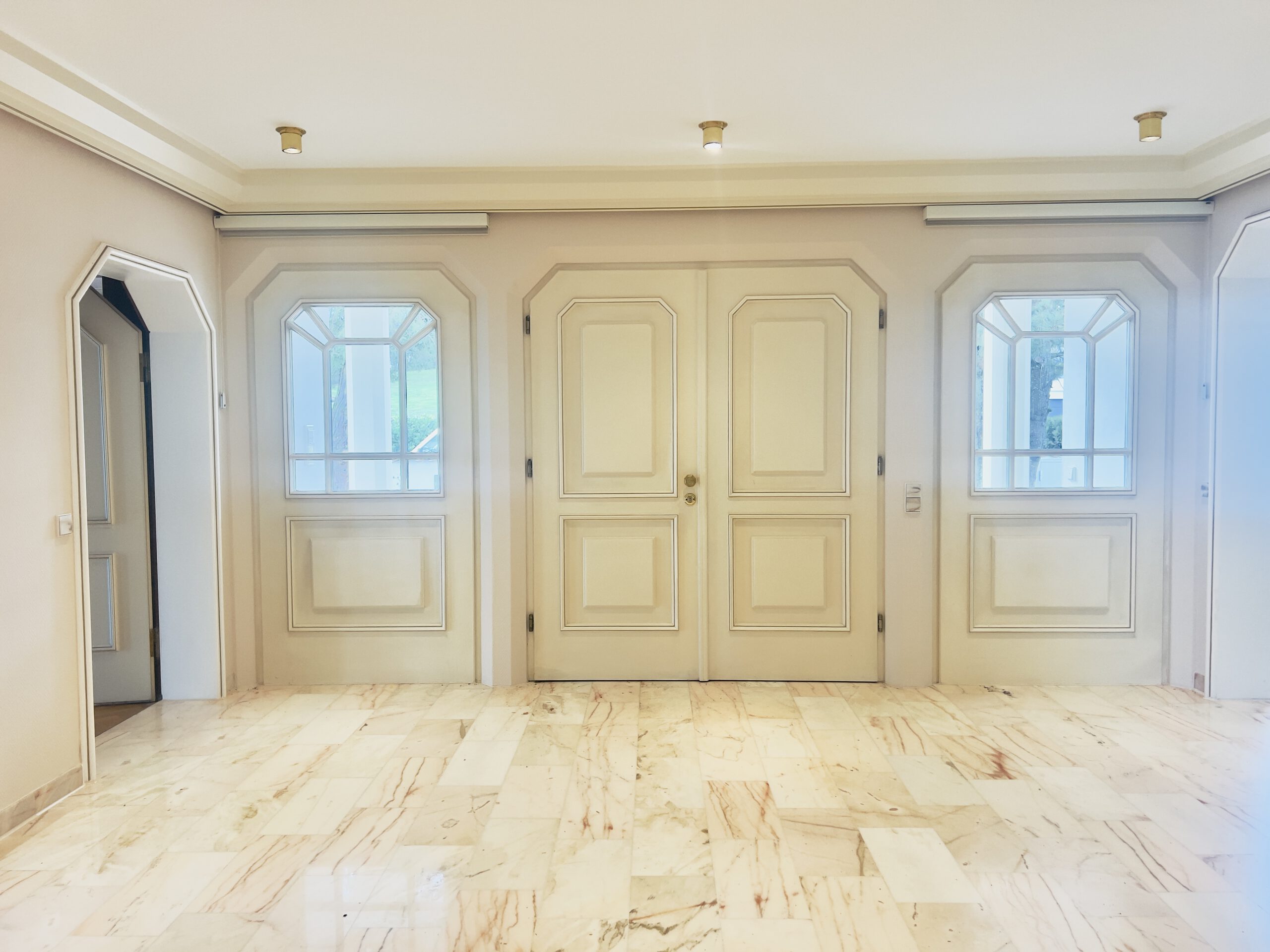 Zur Immobilie gehören sowohl eine Doppel- als auch eine Einzelgarage, die ausreichend Platz für Fahrzeuge bieten. Ein luxuriöses Wohnbad sowie zwei Schlafzimmer und ein Ankleidezimmer bieten Komfort und Raum für Entspannung. Zusätzlich verfügt die Villa über zwei Einliegerwohnungen, die vielfältige Nutzungsmöglichkeiten bieten und Platz für Gäste oder zusätzlichen Wohnraum bieten.